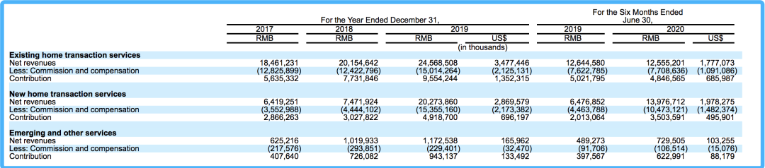 有意思的是,巨頭們進入這個市場時,都紛紛先盯上了新房銷售領域。而這個細分領域的潛力也可以從貝殼的財務數據中窺探一、二。